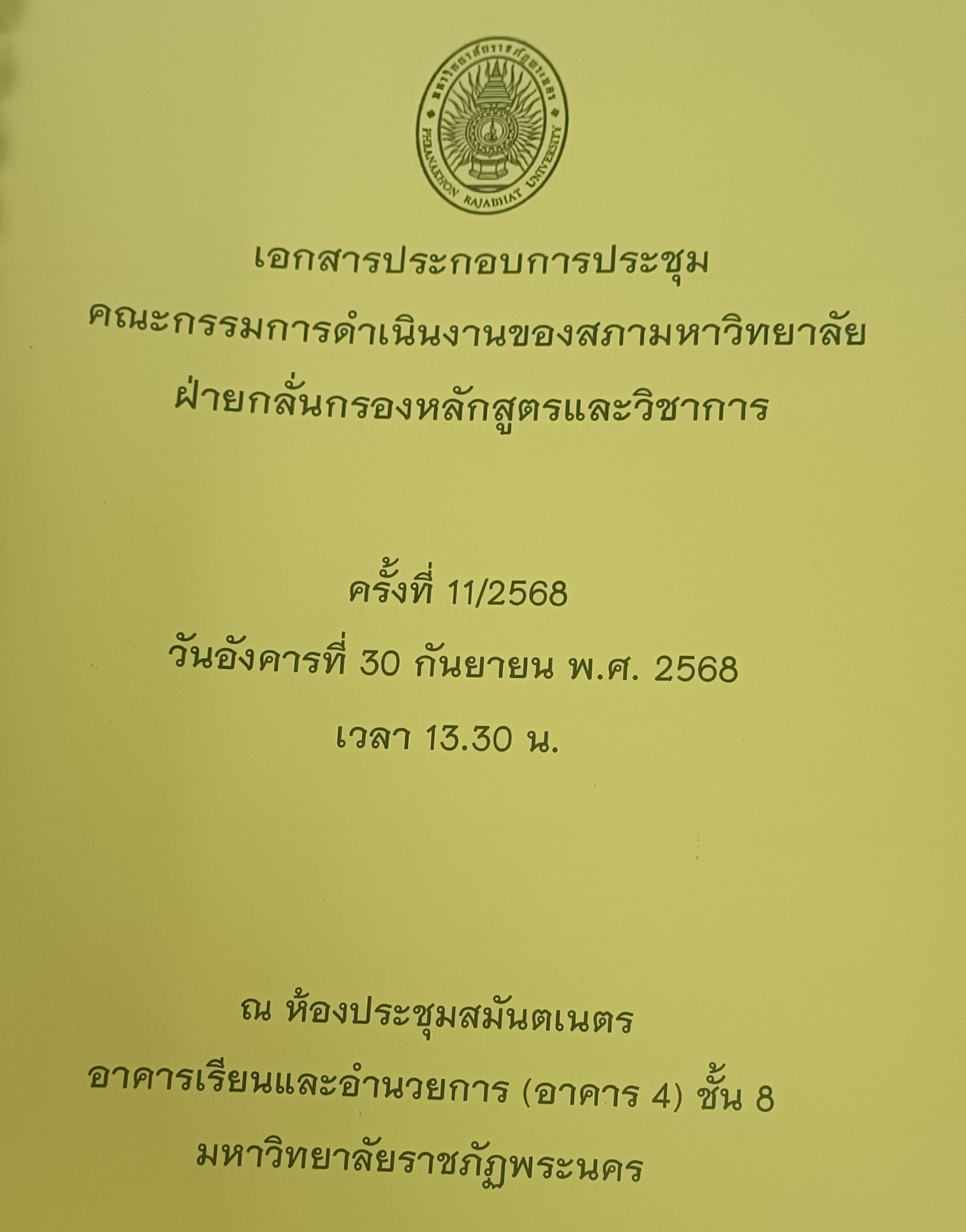 การประชุมคณะกรรมการกลั่นกรองหลักสูตรและวิชาการ ครั้งที่ 11/2568 วันอังคารที่ 30 กันยายน 2568