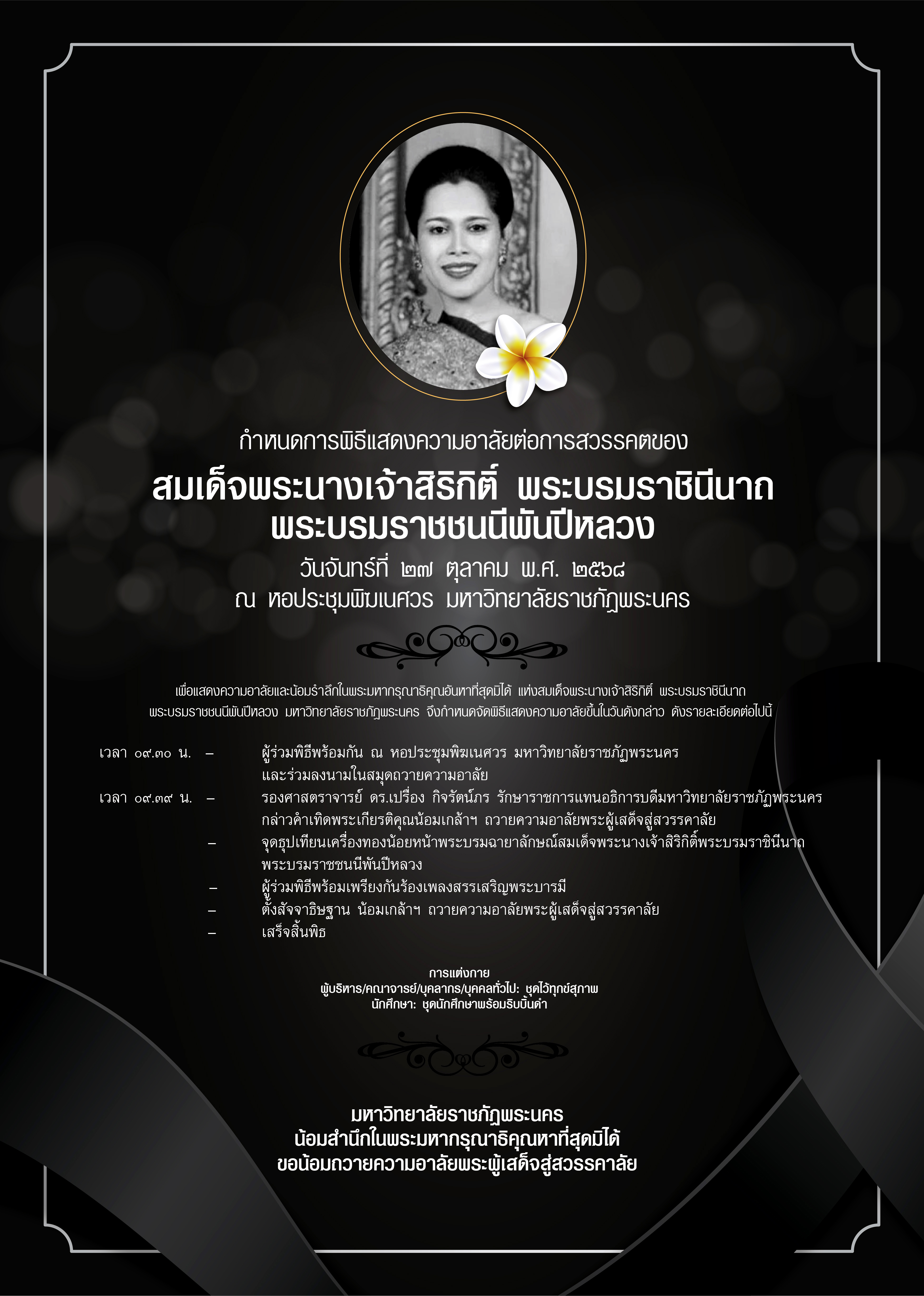มหาวิทยาลัยราชภัฏพระนครได้จัดพิธีแสดงความอาลัยต่อการสวรสวรรคต และป้อมร้าลึกในพระมหากรุณาธิคุณอันหาที่สุดมิได้ ของสมเด็จพระนางเจ้าสิริกิติ์ พระบรมราชินีนาถพระบรมราชชนนีพันปีหลวง