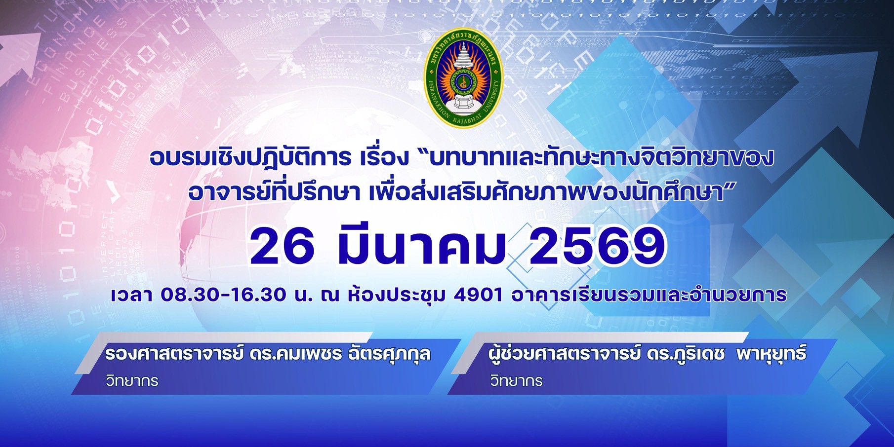 กิจกรรมอบรมเชิงปฏิบัติการ เรื่อง"บทบาทและทักษะทางจิตวิทยาของอาจารย์ที่ปรึกษา เพื่อส่งเสริมศักยภาพของนักศึกษา"
