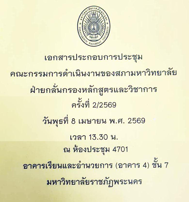 การประชุมคณะกรรมการดำเนินงานของสภามหาวิทยาลัย ฝ่ายกลั่นกรองหลักสูตรและวิชาการ ครั้งที่ 2/2569 วันพุธที่ 8 เมษายน 2569