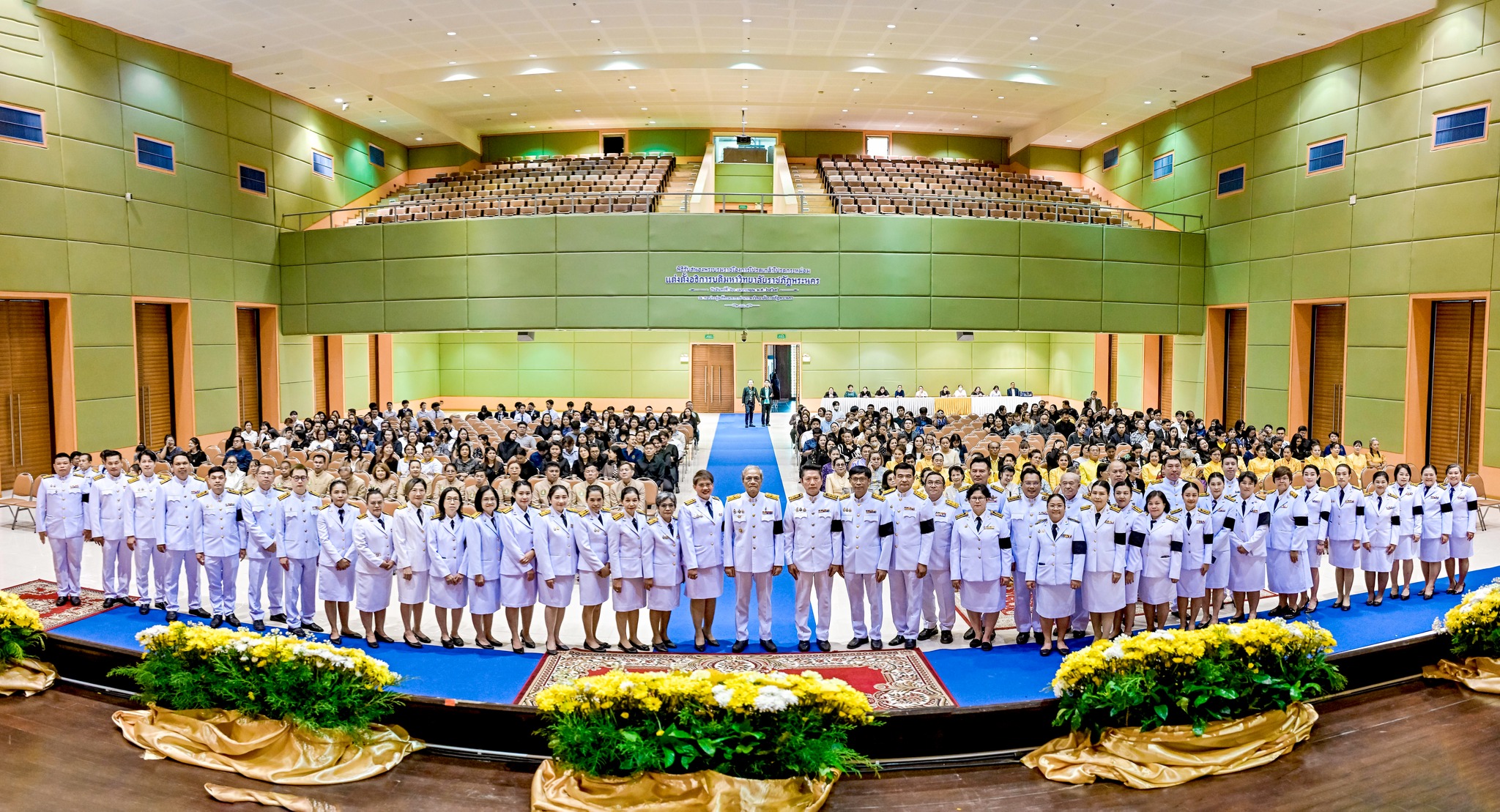 วันจันทร์ที่ 20 เมษายน พ.ศ. 2569 สำนักส่งเสริมวิชาการและงานทะเบียน โดยมีผู้อำนวยการสำนักฯ ผู้ช่วยศาสตราจารย์ ดร.สุบัน บัวขาว รองผู้อำนวยการสำนักฯ ผู้ช่วยศาสตราจารย์ ดร.ปวีณา ปรีชญากุล หัวหน้าสำนักงานและเจ้าหน้าที่ เข้าร่วมงานในพิธี รับสนองพระบรมราชโองการ โปรดเกล้าโปรดกระหม่อมแต่งตั้ง รองศาสตราจารย์ ดร.เปรื่อง กิจรัตน์ภร อธิการบดีมหาวิทยาลัยราชภัฏพระนคร โดยทางสำนักส่งเสริมวิชาการและงานทะเบียน ได้แสดงความยินดี ณ หอประชุมภัทรมหาราช มหาวิทยาลัยราชภัฏพระนคร